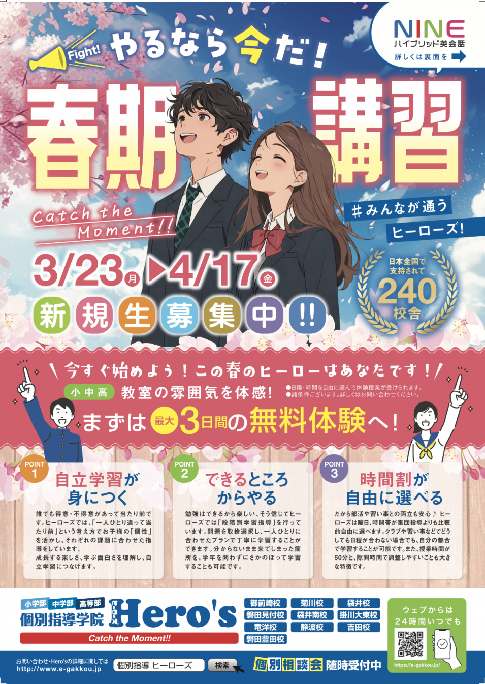 これからの日本を背負う子供達だからこそ「夢」や「目標」を持たせ、 学校では教えてくれない「人間力」を教えるのも我々Hero`sのスタイルです。 「君」なんだから!と教えています。 |